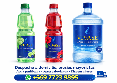 En VIVASE entregamos agua purificada y mineralizada, con un nivel de pureza entre 7 y 12 PPM, ideal para consumo diario.